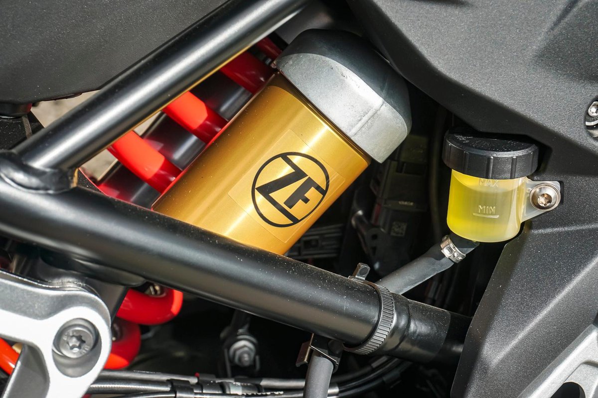 - Front Suspension: Upside-down Gabel; Spring pre-load manually adjustable, rebound & compression adjustable; Dynamic ESA