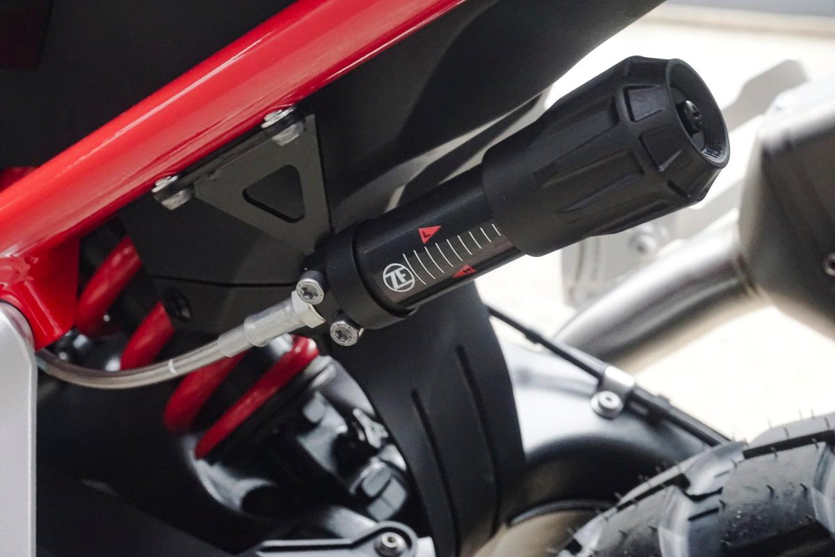 - Rear Suspension: Sachs spring strut w/ expansion tank; Spring pre-load hydraulically adjustable; Rebound damping adjustable