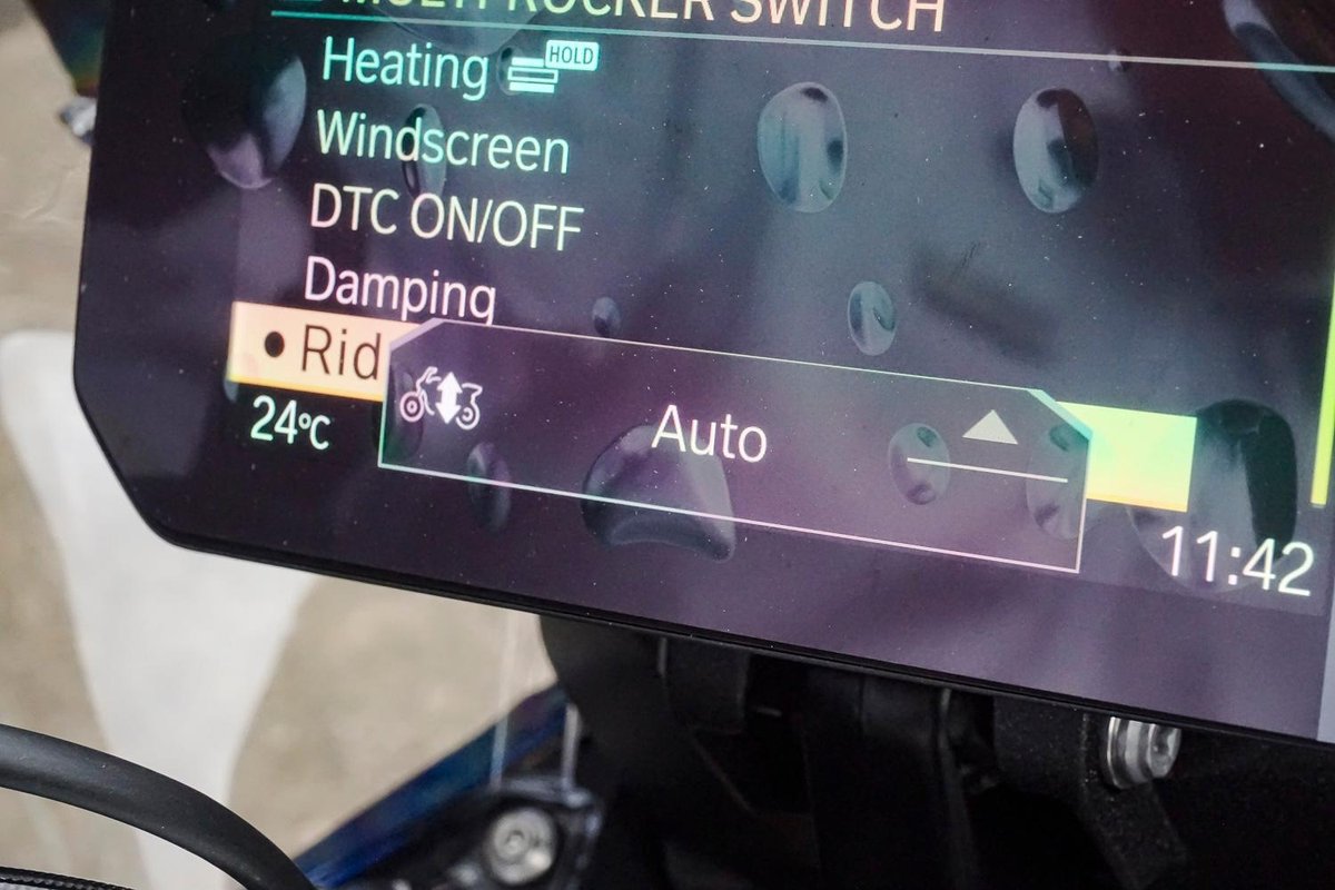 • Front Suspension: BMW Motorrad EVO-Telelever, handlebar tilting decoupled via flex element, central shock absorber